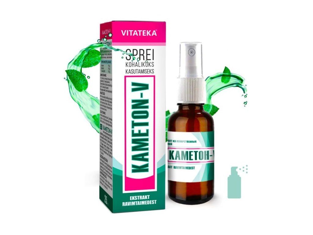 Bylinný sprej Kameton-V o je určený na lokálne použitie pri nachladnutí, podráždení hrdla, zachrípnutí alebo upchatom nose. Obsahuje prírodné rastlinné extrakty a éterické oleje, ktoré pomáhajú upokojiť sliznice, uľahčiť dýchanie a osviežiť dych.